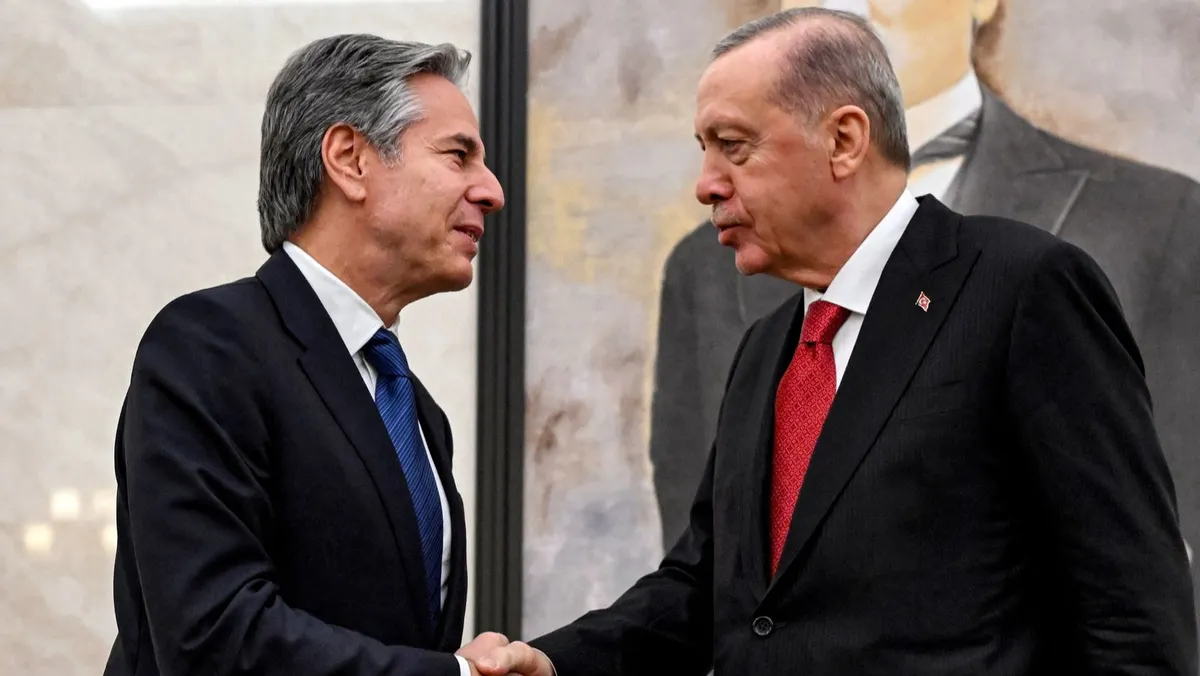 بحث الرئيس التركي رجب طيب أردوغان، خلال استقباله، الخميس، وزير الخارجية الأمريكي أنتوني بلينكن في أنقرة، آخر التطورات في سوريا، معلناً أن بلاده "ستتخذ إجراءات احترازية" في سوريا من أجل "أمنها القومي"، وذلك بعدما شهدت الأيام الأخيرة اشتباكات بين قوات تدعمها الولايات المتحدة، وأخرى تدعمها تركيا.