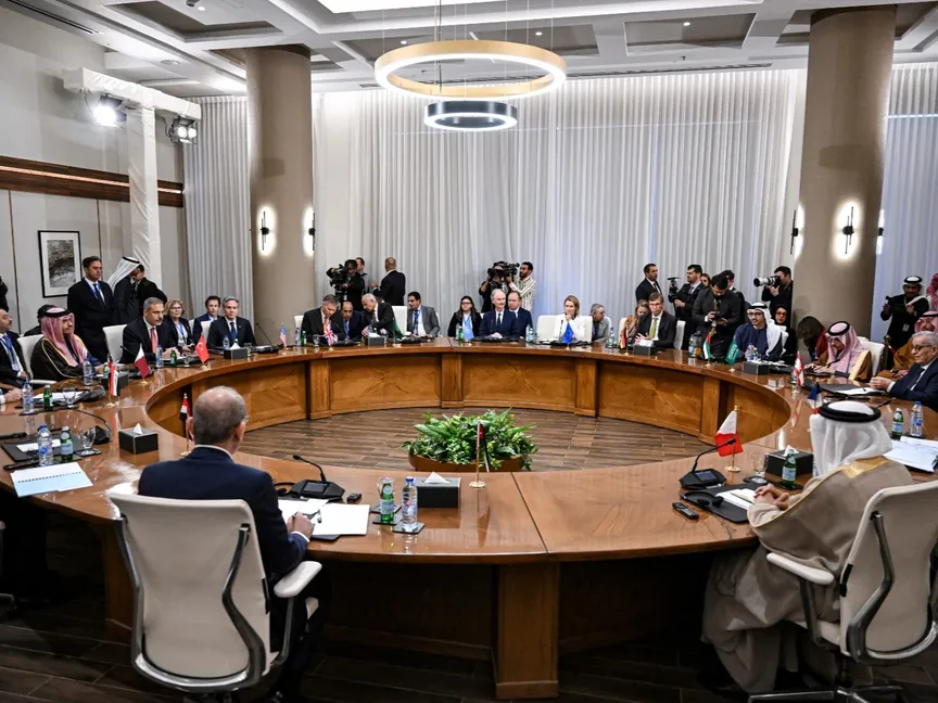 واجتمع بلينكن ومبعوث الأمم المتحدة الخاص لسوريا جير بيدرسون، ومسؤولة السياسة الخارجية بالاتحاد الأوروبي كايا كالاس، ووزير الخارجية التركي ووزراء خارجية الأردن والسعودية والعراق ولبنان ومصر والإمارات والبحرين وقطر. ولم يشارك في الاجتماع أي ممثل لسوريا.