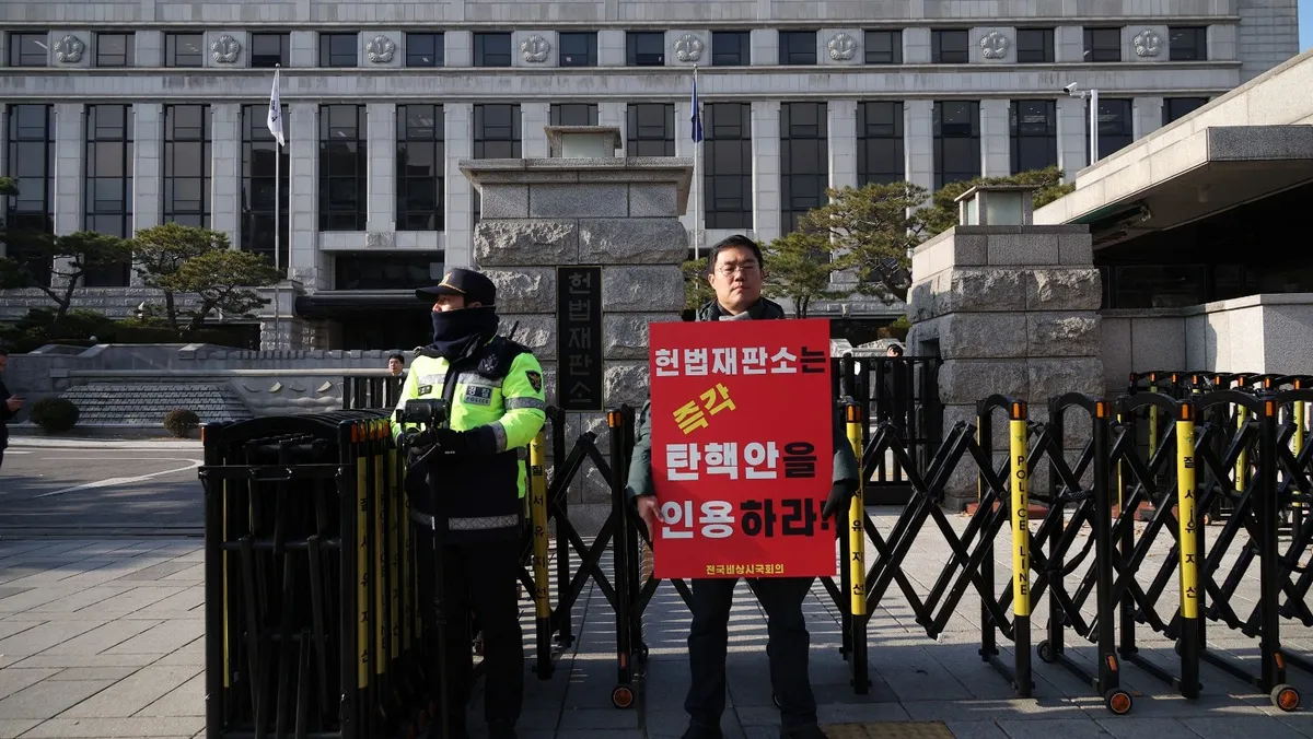 قال متحدث باسم المحكمة الدستورية في كوريا الجنوبية إن المحكمة ستبدأ الاثنين، النظر في مساءلة الرئيس يون سوك يول بشأن محاولته قصيرة الأمد لفرض الأحكام العرفية في الثالث من ديسمبر، فيما يعتزم محققون استجواب يون هذا الأسبوع، وفقاً لما ذكرته وكالة "يونهاب" للأنباء.