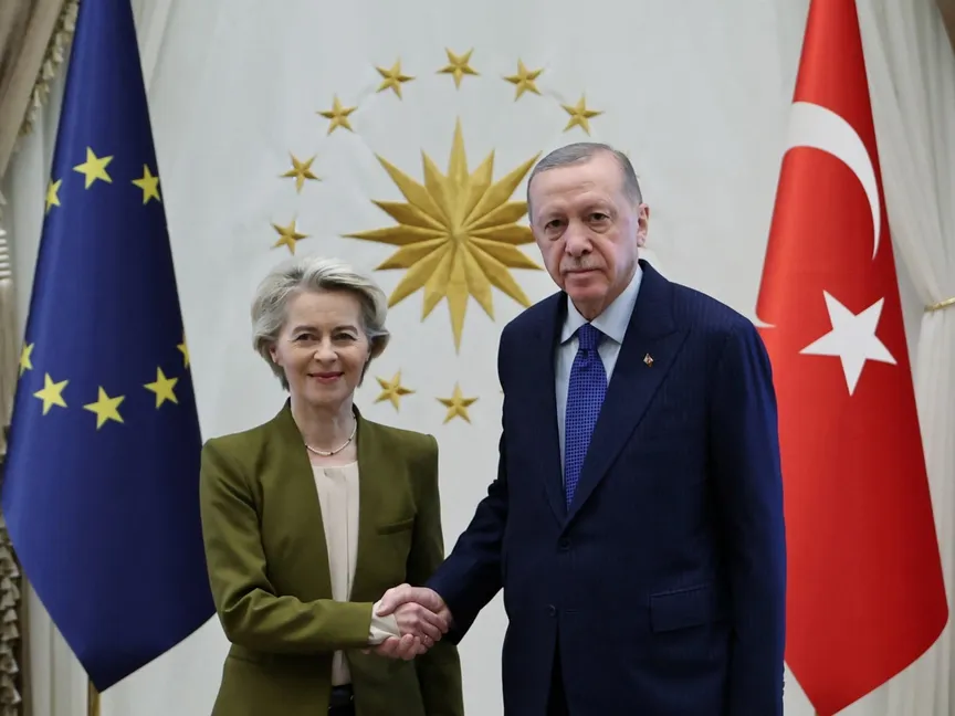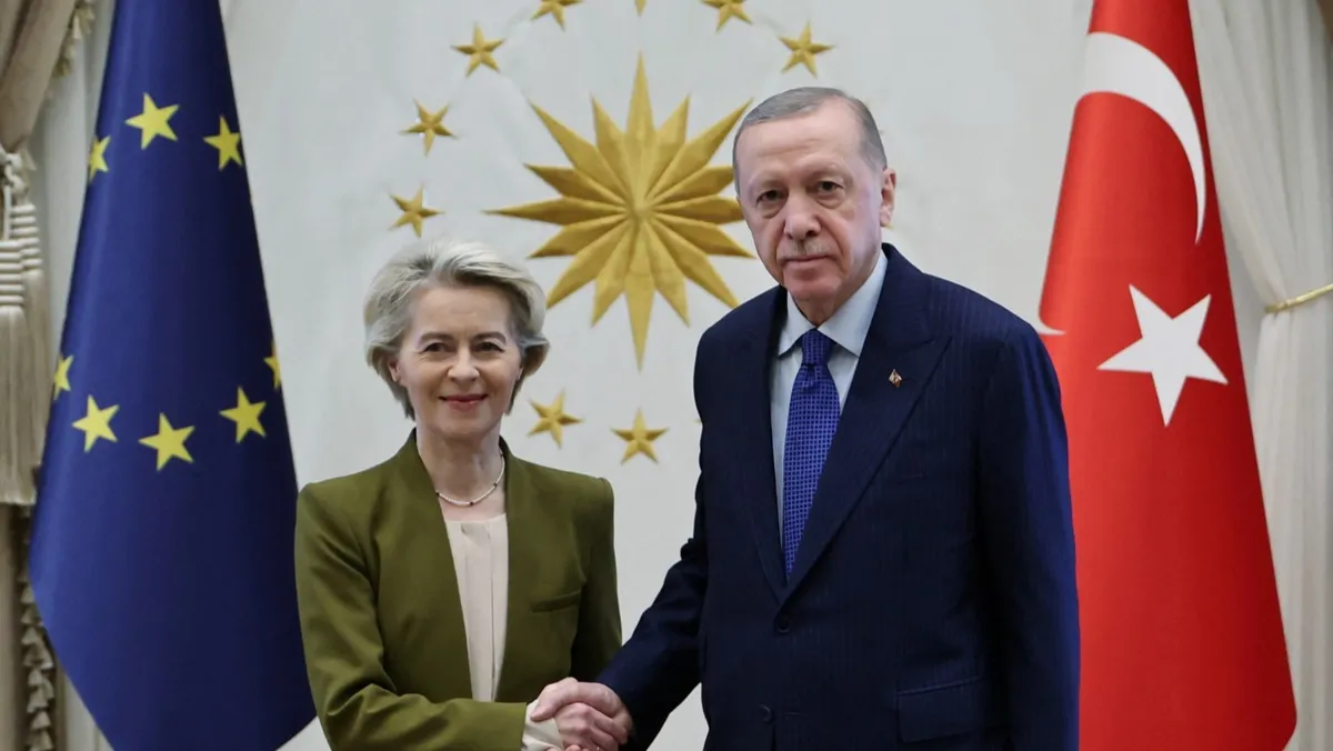 وأكدت على أنها تحدثت مع الرئيس التركي عن العلاقة بين تركيا والاتحاد الأوروبي، مشيرة إلى "علاقات ثرية ومعقدة"، موضحة أن هناك تقدماً بالعلاقات الاقتصادية.