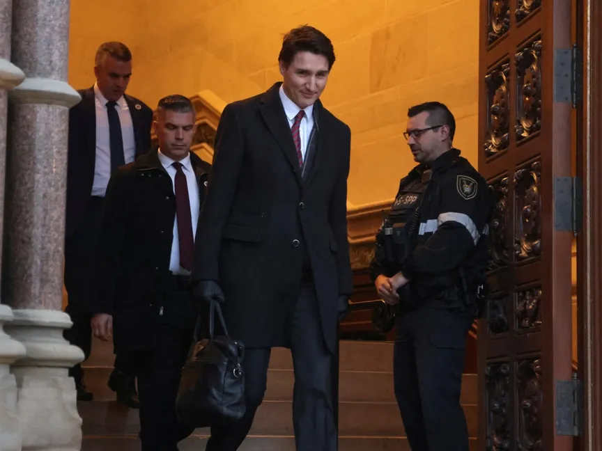 رئيس الوزراء الكندي جاستن ترودو يغادر مبنى البرلمان بعد اجتماع للحكومة في أوتاوا بكندا. 20 ديسمبر 2024 - reuters