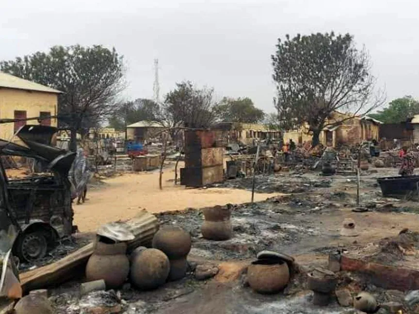 آثار حريق في سوق للماشية في الفاشر، عاصمة ولاية شمال دارفور السودانية جراء الحرب بين الجيش وقوات الدعم السريع. 1 سبتمبر 2023 - AFP