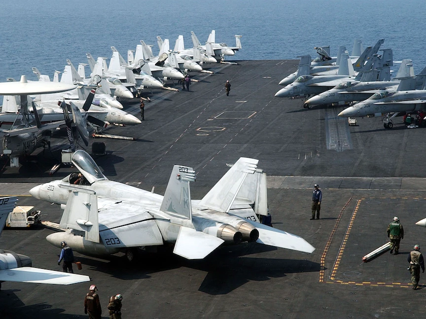 مقاتلات على حاملة الطائرات الأميركية "يو إس إس رونالد ريغان" لدى وصولها إلى قاعدة بحرية كورية جنوبية - 22 مارس 2007 - BLOOMBERG