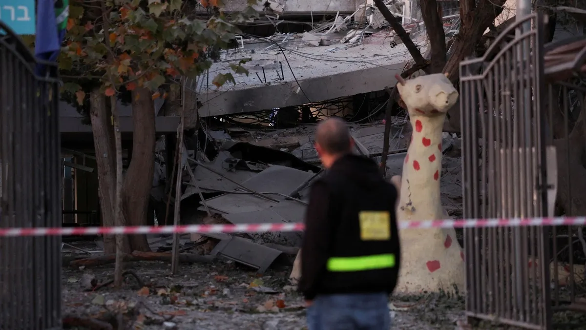 آثار تضرر موقع في تل أبيب جراء اعتراض صاروخ أطلق من اليمن على إسرائيل. 19 ديسمبر 2024 - REUTERS