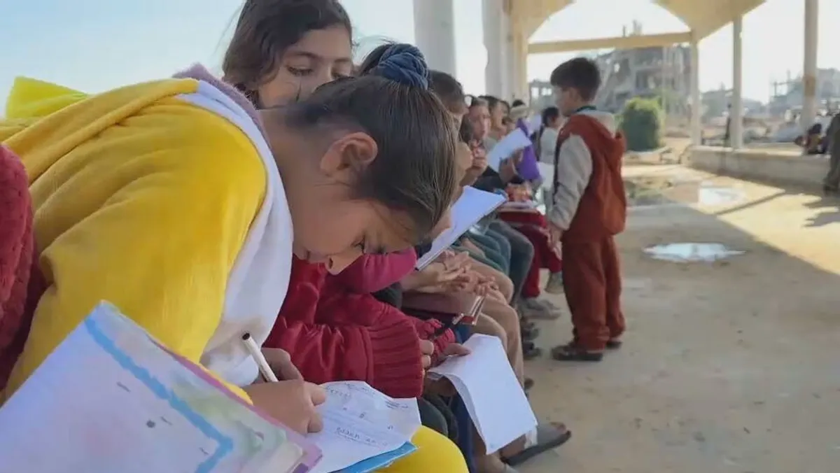 صباح كل يوم يتوجه أطفال في مدينة خان يونس جنوب قطاع غزة المدمر من الحرب الإسرائيلية، بكل حماسة لتلقي دروس تعليمية، لكن ليس بين جدران المدارس، بل داخل مقبرة.