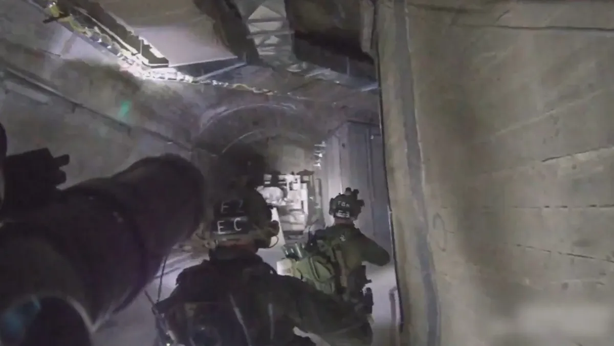 ونشر الجيش لقطات تظهر جنوداً إسرائيليين يصعدون وينزلون من طائرات هليكوبتر، ويتحركون عبر ما يبدو أنه نفق مبطن بالخرسانة وموقع صناعي، ويفحصون وثائق.