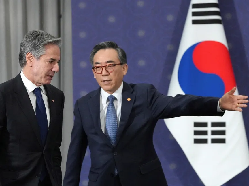 وزير الخارجية الأميركي أنتوني بلينكن رفقة نظيره الكوري الجنوبي تشو تاي يول في مقر الخارجية في سول بكوريا الجنوبية. 6 يناير 2025 - Reuters