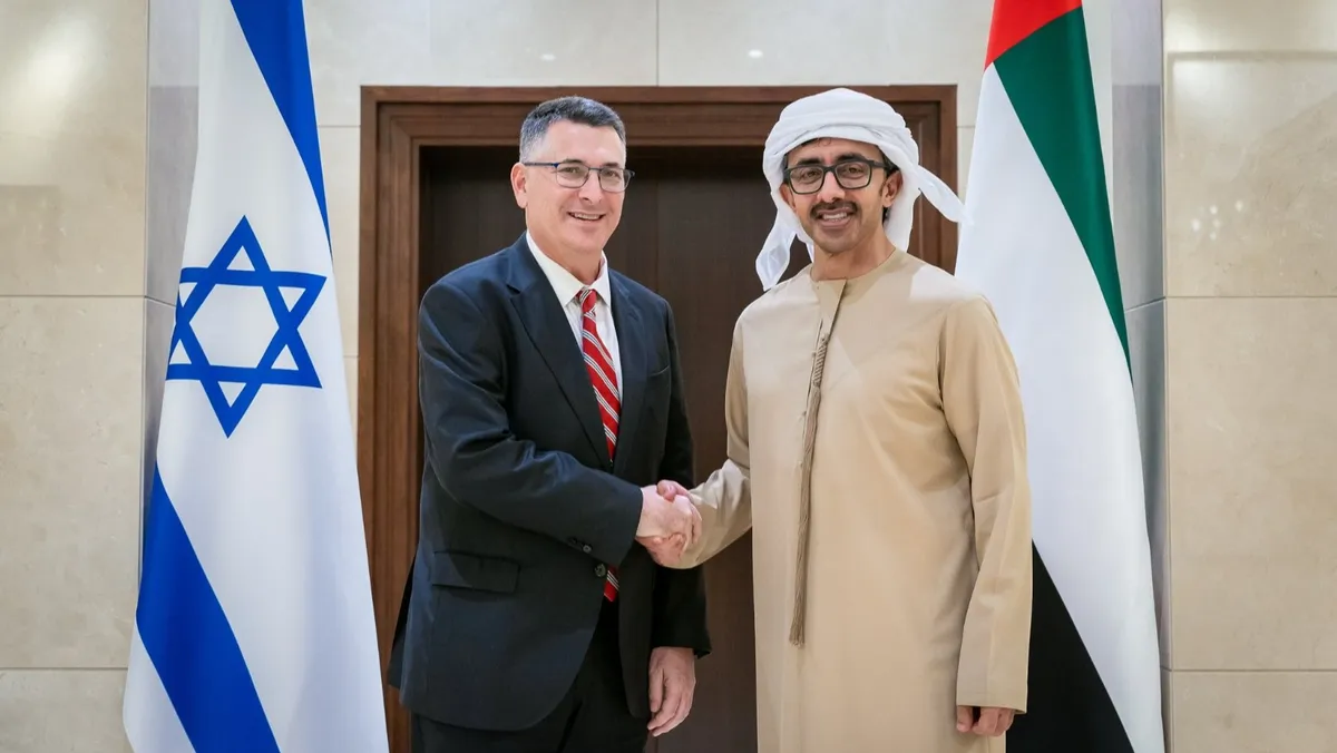 وأضافت الوكالة أن الشيخ عبد الله بن زايد "أكد خلال استقبال نظيره الإسرائيلي في أبوظبي، على الأهمية العاجلة للدفع نحو إيجاد أفق سياسي جاد لإعادة المفاوضات لتحقيق السلام الشامل القائم على أساس حل الدولتين، بما يسهم في ترسيخ دعائم الاستقرار وتحقيق الأمن المستدام في المنطقة وإنهاء العنف المتصاعد الذي تشهده".