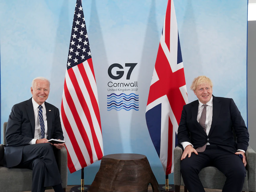 وفي أعقاب أول محادثات مباشرة عقدها الرئيس الأميركي مع جونسون عشية قمة مجموعة السبع بـ"كاربيس باي" في كورنوال، قال بايدن: "أجرينا اجتماعاً مثمراً، وناقشنا مجموعة من القضايا، نريد أن ندافع عن القيم الديمقراطية معاً، وهناك أسس قوية لشراكتنا، قبل 80 عاماً، وقع تشرشل وروزفلت على (ميثاق الأطلسي)، وكان يضم مبادئ أساسية، اليوم نلتزم بهذا الوعد ونحدث هذا الميثاق".