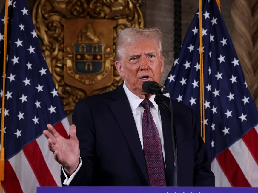 الرئيس الأميركي المنتخب دونالد ترمب خلال مؤتمر صحافي في منتجع مار إيه لاجو في بالم بيتش بولاية فلوريدا. 7 يناير 2025 - REUTERS