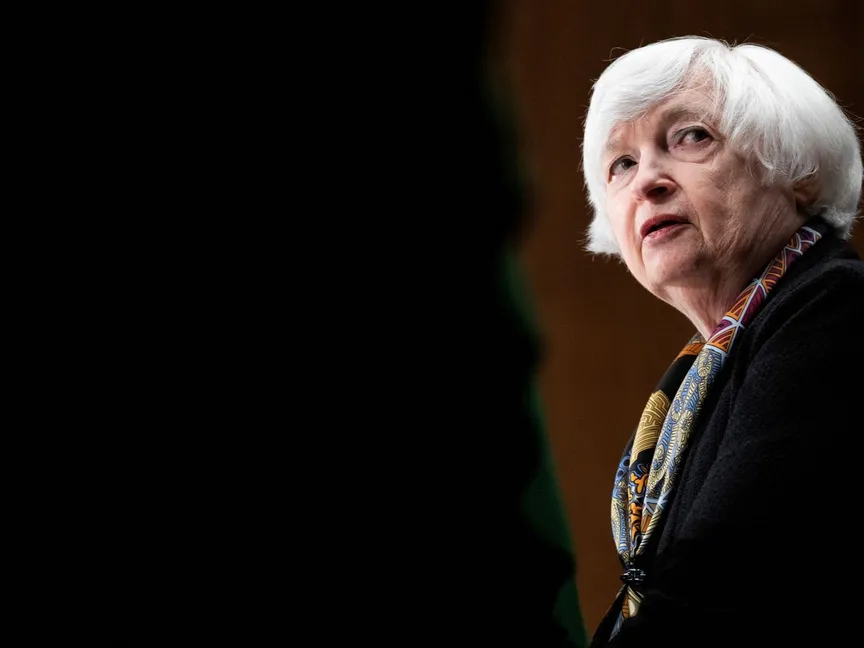 وزيرة الخزانة الأميركية جانيت يلين تدلي بإفادتها أمام مجلس الشيوخ في واشنطن - 10 مايو 2022. - REUTERS