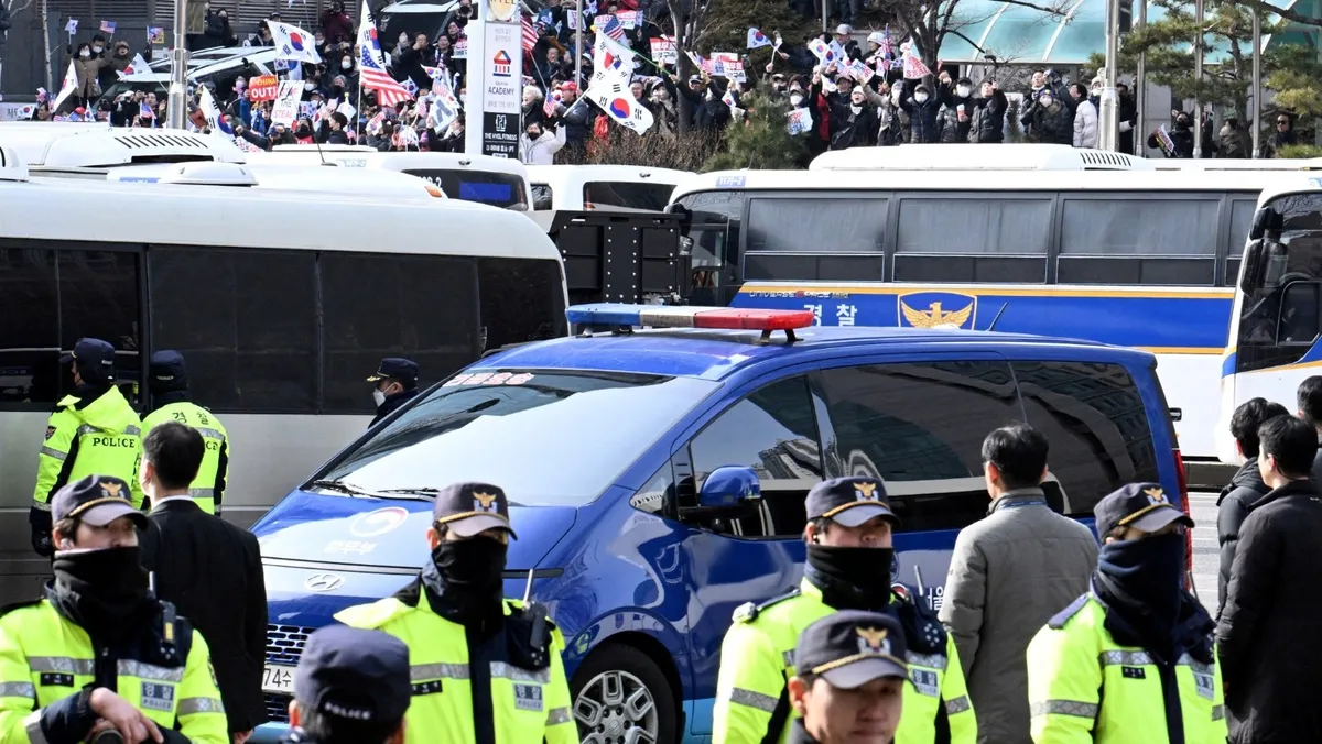 وشوهدت الشرطة وهي تفرق حشداً من أنصار يون الذين سدوا بوابة محكمة منطقة سول الغربية، حيث بدأت الجلسة في حوالي الساعة الثانية ظهراً (05:00 بتوقيت جرينتش)، إذ من المتوقع صدور القرار السبت أو الأحد.