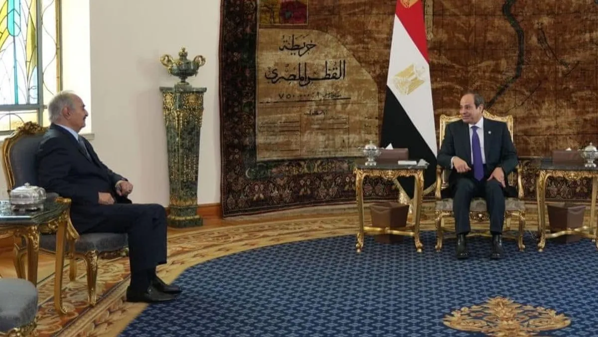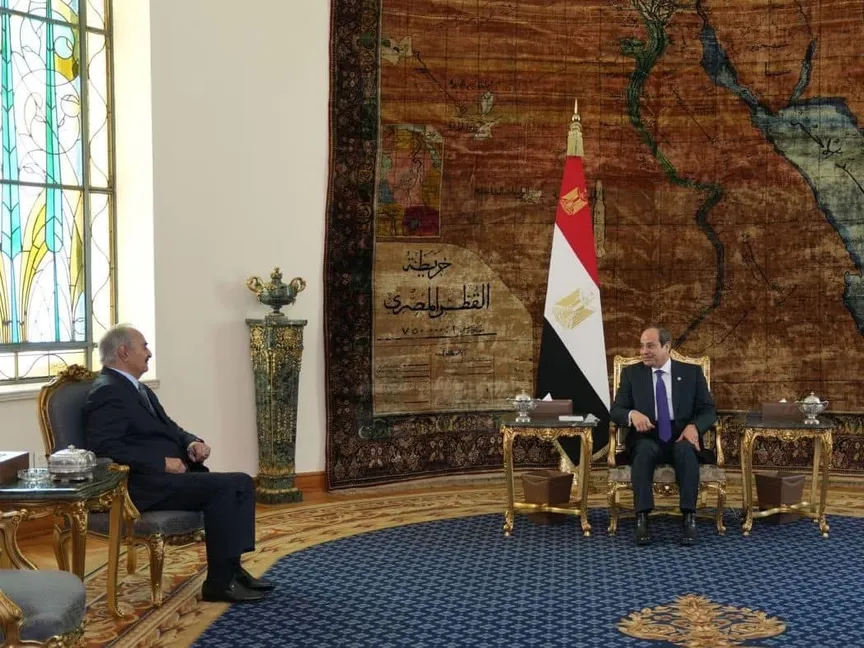استقبل الرئيس المصري عبد الفتاح السيسي السبت، المشير خليفة حفتر، القائد العام للجيش الليبي في القاهرة، وعقدا اجتماعاً، بحضور مدير المخابرات المصرية العامة، حسن رشاد، شهد التأكيد على "خصوصية العلاقات المصرية الليبية".
