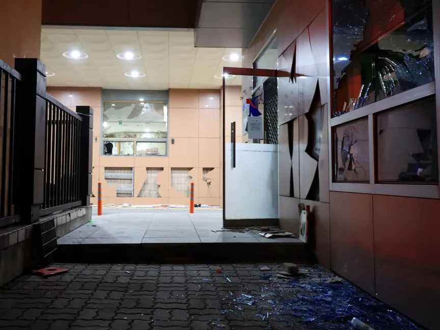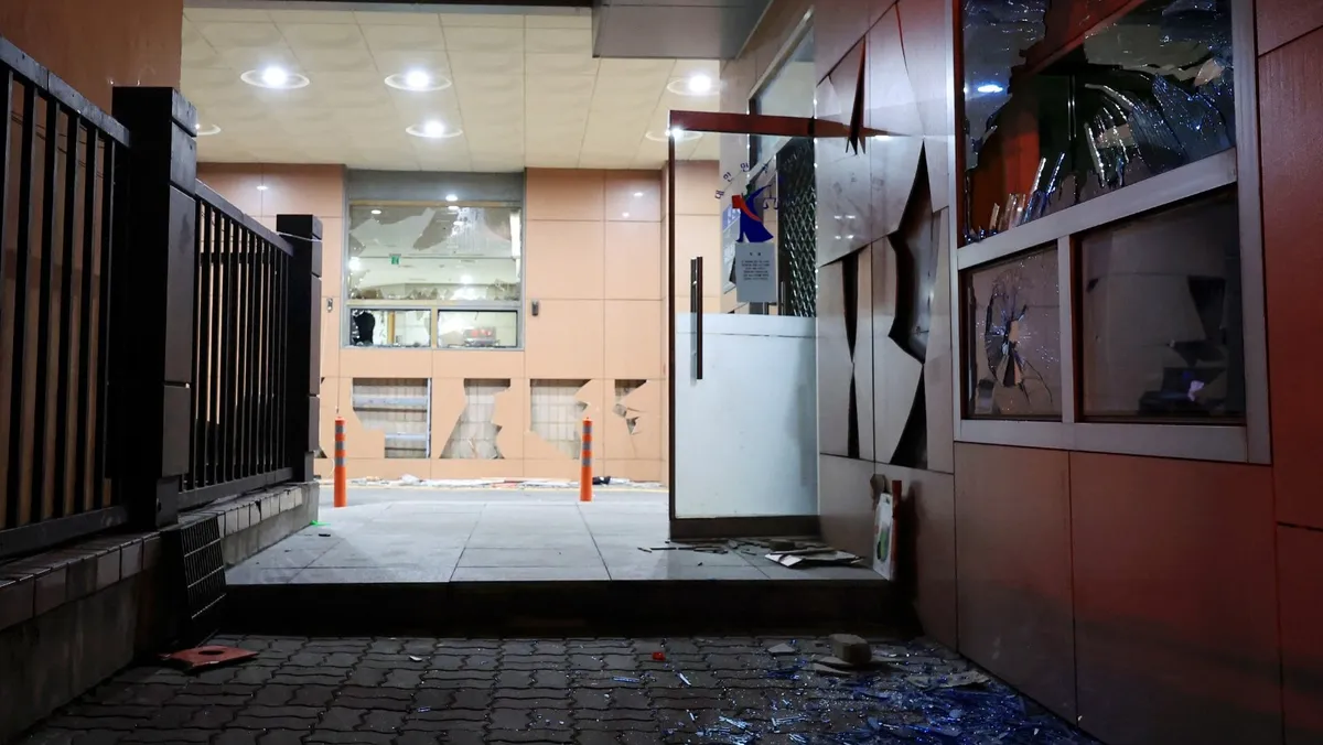 وبعد صدور مذكرة الاعتقال، حطم أنصار الرئيس الغاضبون نوافذ المحكمة واقتحموا المحكمة احتجاجاً، ما أثار حالة من الفوضى، فيما ألقى بعضهم بكراسي وقمامة وأشياء أخرى على ضباط الشرطة المحيطين بمبنى المحكمة، هاتفين باسم الرئيس.