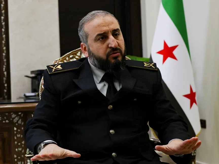 وزير الدفاع في الإدارة السورية الجديدة مرهف أبو قصرة خلال مقابلة مع رويترز في دمشق. 19 يناير 2025 - REUTERS