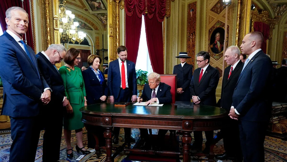 حدد البيت الأبيض في أولى بياناته أبرز أولويات إدارة الرئيس الأميركي دونالد ترمب، التي بدأت مهامها الاثنين، والمتمثلة في "تأمين الحدود"، وإعلان "حالة الطوارئ الوطنية في مجال الطاقة"، وتبنّي شعار "أميركا أولاً" في مجالي التجارة والسياسية الخارجية.