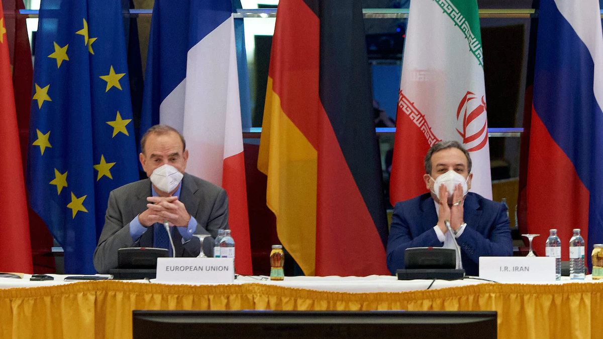 عباس عراقجي كبير المفاوضين الإيرانيين في محادثات فيينا إلى جانب مبعوث الاتحاد الأوروبي إنريكي مورا - 12 يونيو 2021 - Anadolu Agency via Getty Images