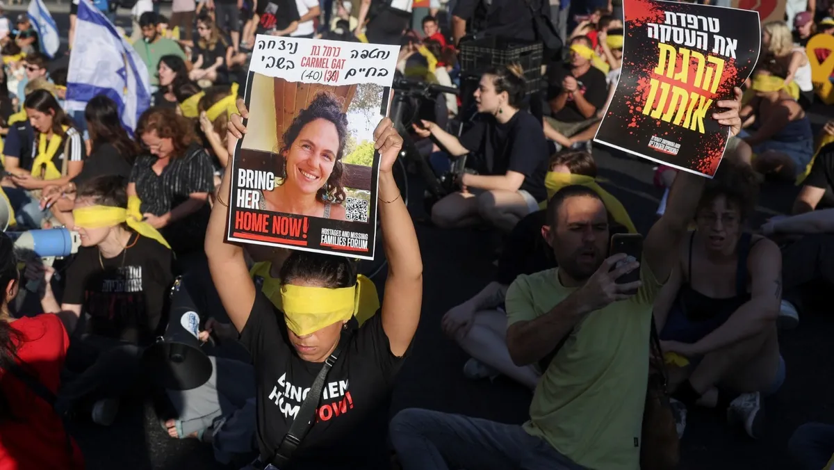 مظاهرة تطالب بعودة المحتجزين الإسرائيليين في غزة. 1 سبتمبر 2024 - Reuters