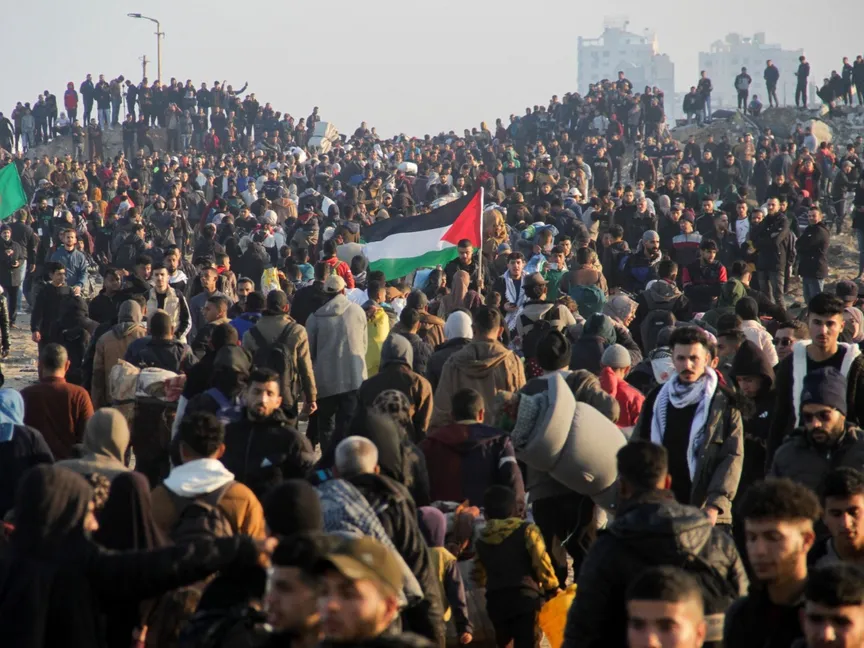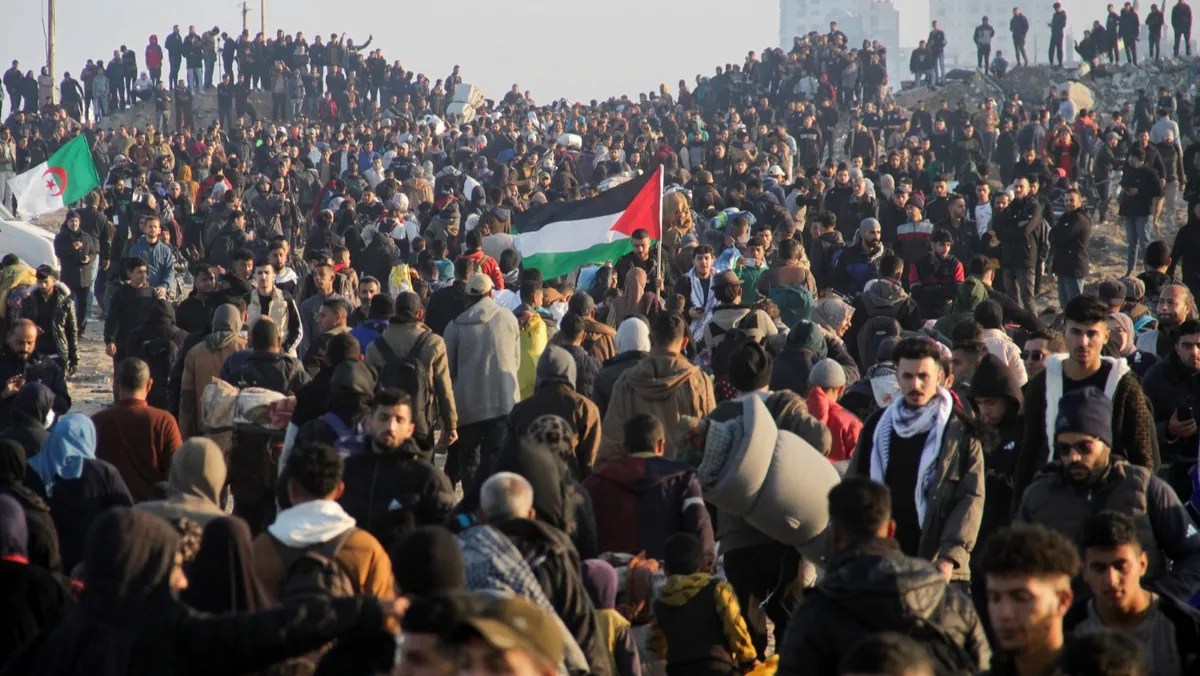 نازحون فلسطينيون في طريقهم إلى منازلهم في شمال غزة. 27 يناير 2025 - Reuters