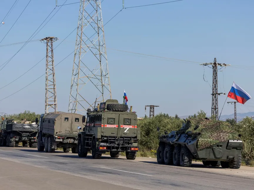 قافلة عسكرية روسية تتجه نحو قاعدة حميميم الجوية على ساحل اللاذقية في سوريا. 14 ديسمبر 2024 - Reuters