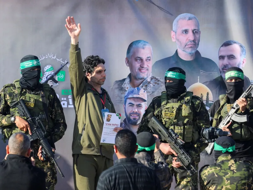 وقال الجيش الإسرائيلي وجهاز الأمن الداخلي (الشاباك) في بيان مشترك إنهما تسلَّما 3 محتجزين من الصليب الأحمر الدولي بعدما تَسلمهم من "كتائب القسام"، الجناح العسكري لحركة "حماس"، وهم "عوفر كالدرون، وياردن بيباس، وكيث سيجال".