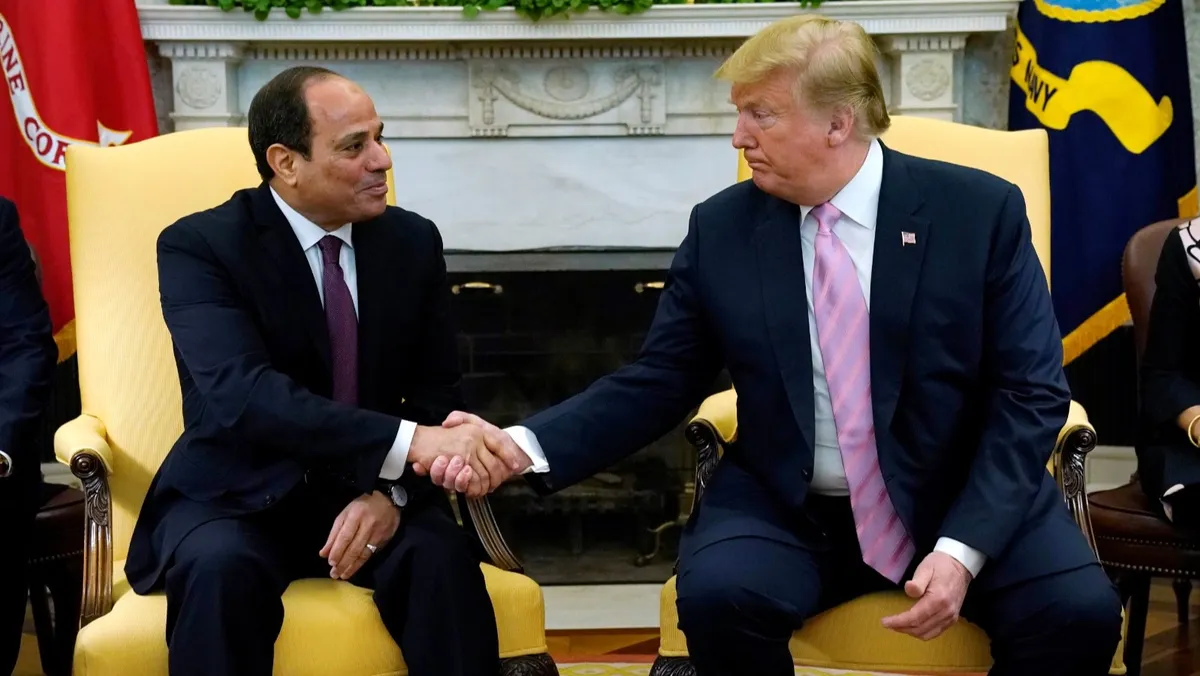 وأكد الرئيس المصري على أهمية التوصل إلى سلام دائم في المنطقة، مشيراً إلى أن المجتمع الدولي يعول على قدرة الرئيس الأميركي على التوصل إلى اتفاق سلام دائم وتاريخي ينهي حالة الصراع القائمة بالمنطقة منذ عقود، خاصة مع انحياز ترمب إلى السلام، مشدداً على ضرورة تدشين عملية سلام تفضي إلى حل دائم في المنطقة.