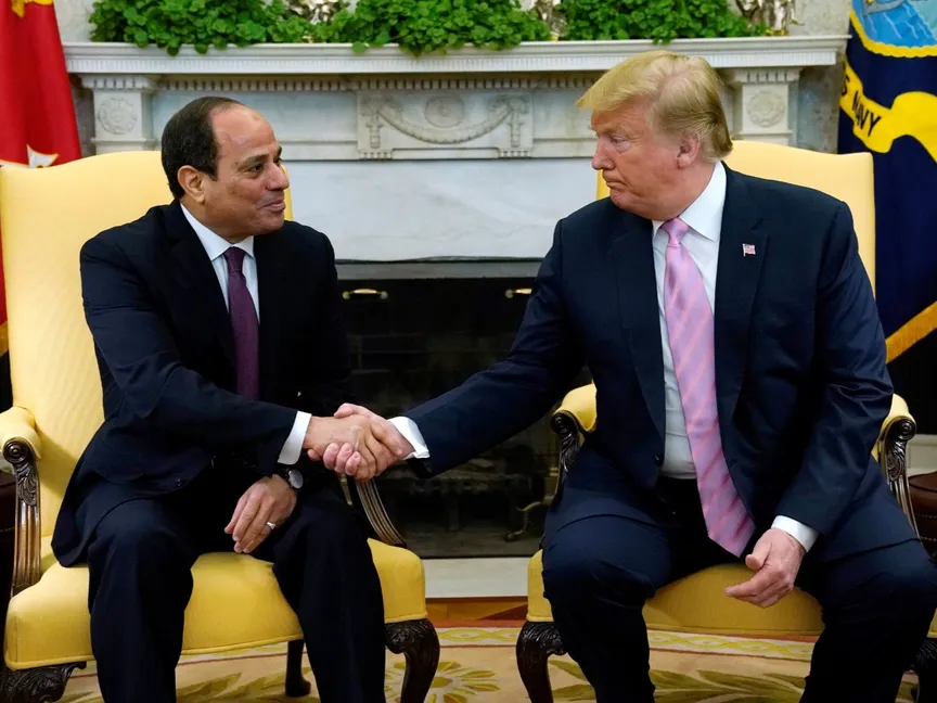 تلقى الرئيس المصري عبد الفتاح السيسي، السبت، اتصالاً هاتفياً من نظيره الأميركي دونالد ترمب، بحثا خلاله "القضايا والأزمات المعقدة" في الشرق الأوسط، وأهمية الاستمرار في تنفيذ المرحلة الأولى والثانية من اتفاق وقف إطلاق النار وتثبيت اتفاق غزة، بالإضافة إلى القضايا الثنائية والإقليمية والدولية.