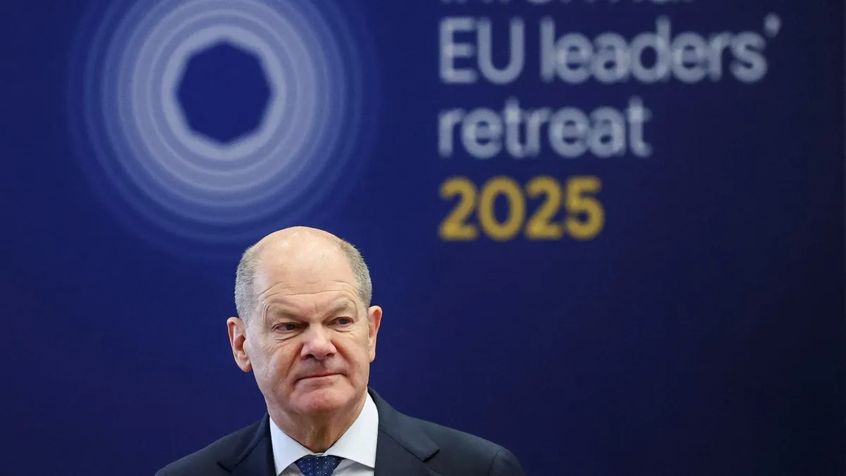 المستشار الألماني أولاف شولتز أثناء حضوره قمة غير رسمية لزعماء الاتحاد الأوروبي في بروكسل. 3 فبراير 2025 - REUTERS