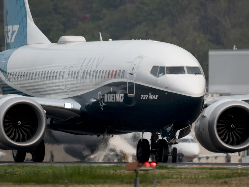طائرة من طراز "بوينغ 737 ماكس" تحطّ خلال رحلة تجريبية في سياتل، 30 سبتمبر 2020 - Bloomberg