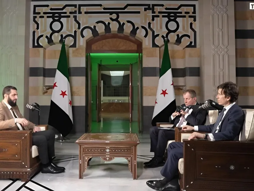 تحدث الرئيس السوري أحمد الشرع خلال لقاء مع بودكاست The Rest Is Politics، عن ملامح توجهاته المستقبلية في المجالات السياسية والاقتصادية والأمنية، والتي تضمنت بناء جيش سوري جديد قائم على "التجنيد الطوعي لا الإجباري"، و"السعي في استقرار المنطقة وأمانها"، و"إنشاء علاقات استراتيجية مع دول الغرب والإقليم".