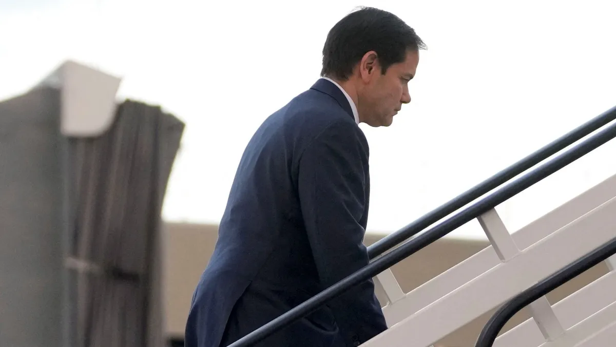 وزير الخارجية الأميركي ماركو روبيو يستقل طائرة في مطار (لاس أميريكاس الدول) في سانتو دومينجو عاصمة جمهورية الدومينيكان. 6 فبراير 2025 - REUTERS