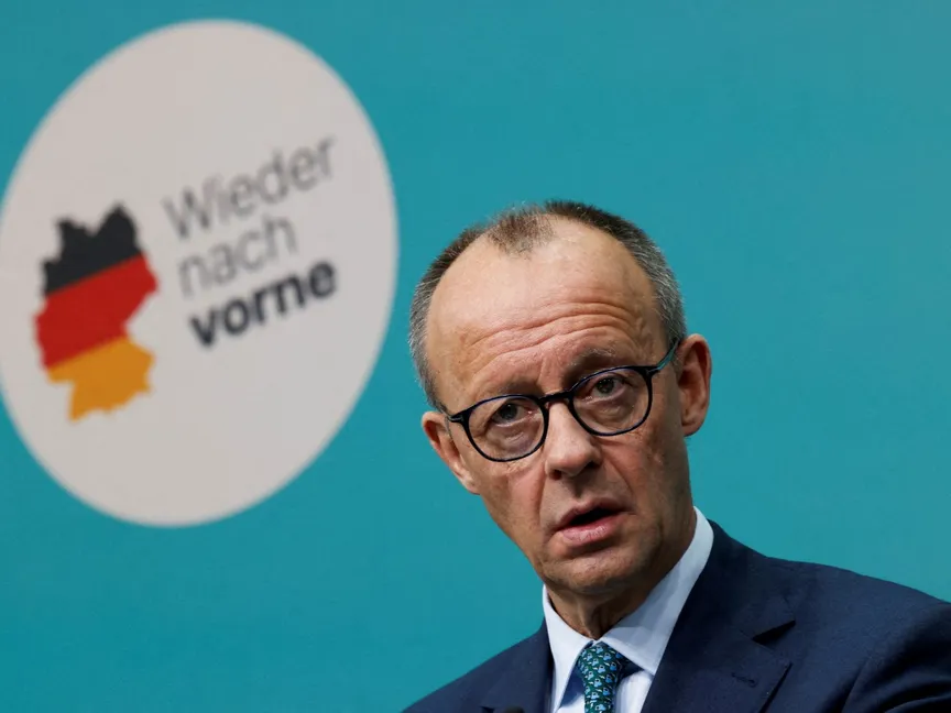 زعيم حزب الاتحاد الديمقراطي المسيحي الألماني فريدريش ميرز خلال مؤتمر صحافي بالعاصمة برلين. 27 يناير 2025 - REUTERS
