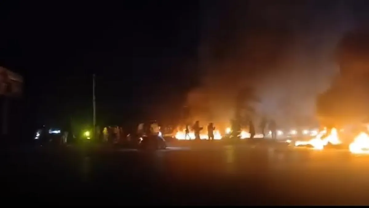أشعل محتجون النار في إطارات سيارات أمام مدخل مطار رفيق الحريري الدولي في بيروت، الخميس، احتجاجاً على عدم السماح بهبوط طائرة إيرانية تقل لبنانيين كانوا في زيارة إلى طهران.