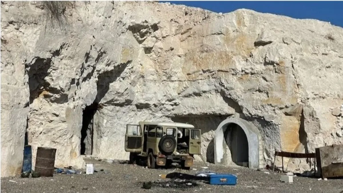 وأضافت BBC أن صناديق مليئة بالبصل الطازج في ساحة القاعدة بدأت الآن في الإنبات. ووصفت القاعدة بـ"متاهة من الأنفاق المحفورة في أعماق تلال صخرية بيضاء". وتوجد أسرّة بطابقين في بعض الغرف التي تفتقر إلى نوافذ. وفي أحد الممرات، تتدلى قطعة قماش بألوان العلم الإيراني من السقف، بينما تصطف على رف صخري بضعة كتب فارسية.