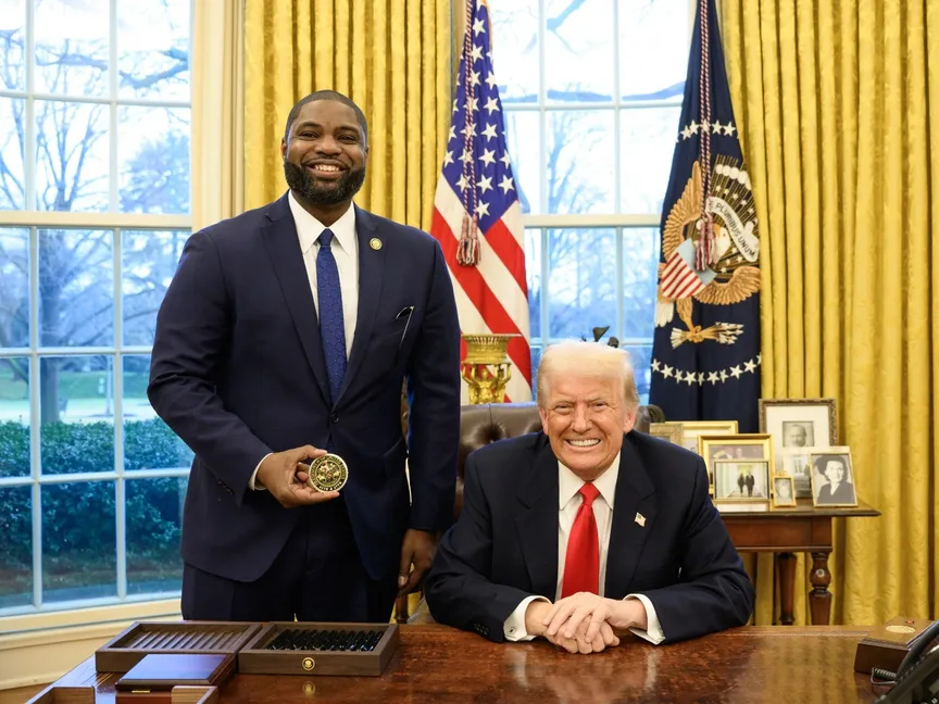 الرئيس الأميركي دونالد ترمب مع النائب عن ولاية فلوريدا بايرون دونالدز في المكتب البيضاوي بالبيت الأبيض. 17 فبراير 2025 - @RepDonaldsPress