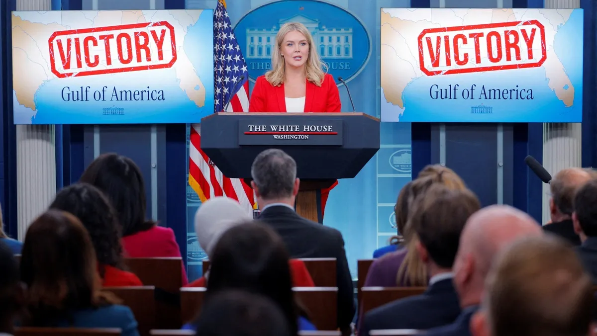 المتحدثة باسم البيت الأبيض كارولين ليفيت خلال مؤتمر صحفي في البيت الأبيض في واشنطن. 25 فبراير 2025 - Reuters