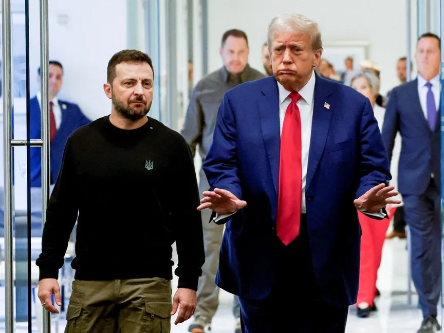 الرئيس الأميركي دونالد ترمب مع الرئيس الأوكراني فلوديمير زيلينسكي في "برج ترمب" بنيويورك. 27 سبتمبر 2024 - Reuters