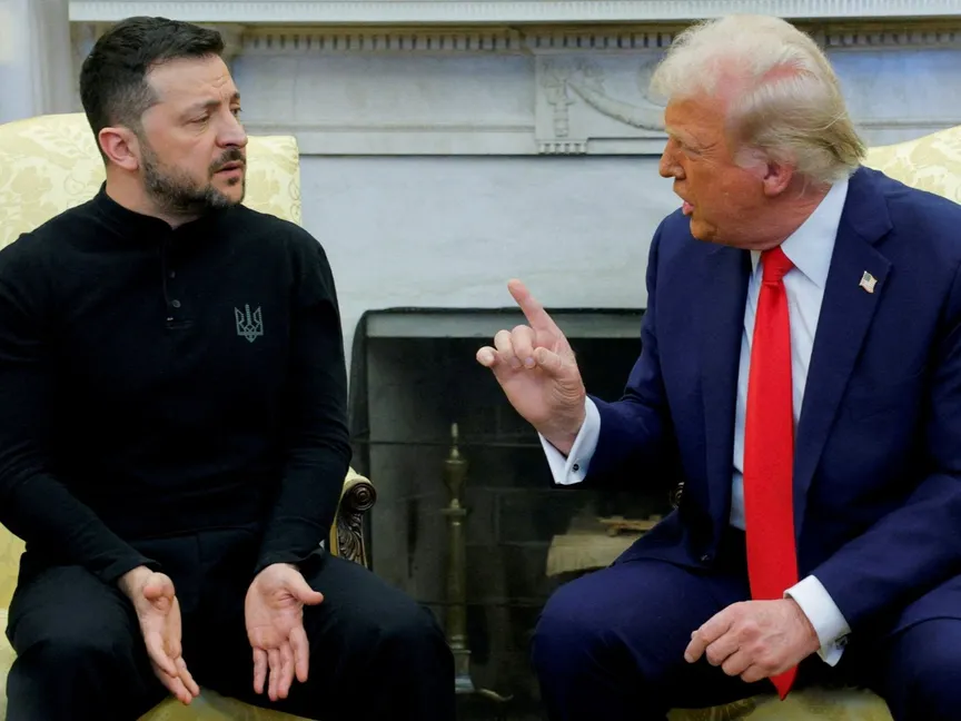 الرئيس الأميركي دونالد ترمب يلتقي بالرئيس الأوكراني فولوديمير زيلينسكي في البيت الأبيض بواشنطن العاصمة. 28 فبراير 2025 - REUTERS