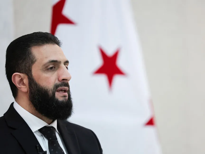 الرئيس السوري أحمد الشرع في مقابلة مع وكالة رويترز في القصر الرئاسي بدمشق. 10 مارس 2025 - REUTERS