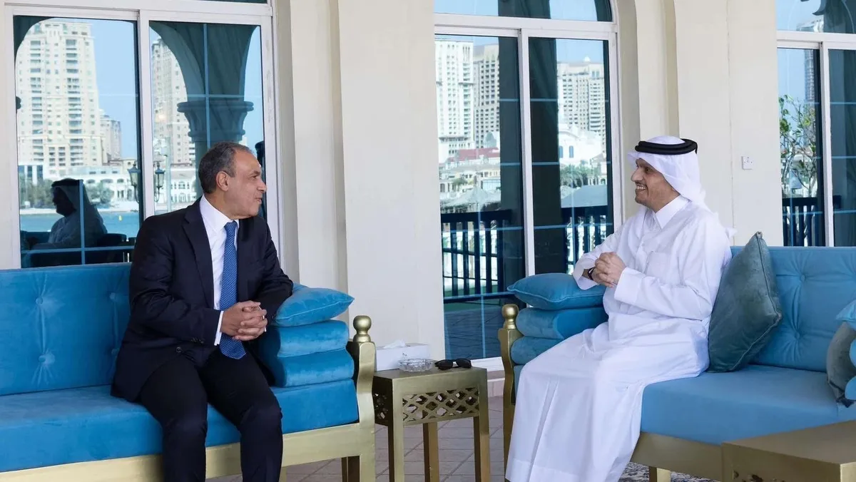 رئيس مجلس الوزراء وزير الخارجية القطري الشيخ محمد بن عبد الرحمن يستقبل وزير الخارجية المصري بدر عبد العاطي في الدوحة، قطر. 12 مارس 2025 - facebook/MFAEgypt