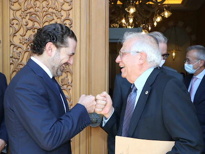 منسق السياسة الخارجية بالاتحاد الأوروبي جوزيف بوريل ورئيس الوزراء اللبناني المكلف سعد الحريري في بيروت، لبنان. 19 يونيو 2021 - REUTERS