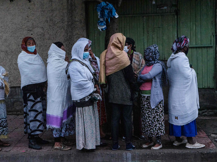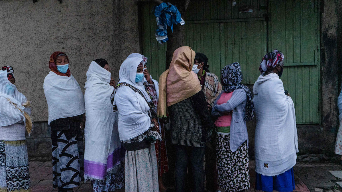 إثيوبيون في طابور خارج مركز اقتراع للإدلاء بأصواتهم في أديس أبابا، إثيوبيا- 21 يونيو 2021 - AFP