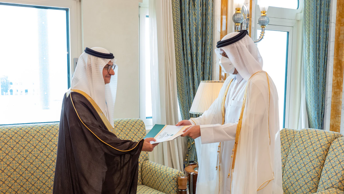 تسلم نائب رئيس الوزراء وزير الخارجية القطري الشيخ محمد بن عبد الرحمن آل ثاني، الاثنين، أوراق اعتماد سفير المملكة العربية السعودية لدى الدوحة الأمير منصور بن خالد بن فرحان آل سعود، بحسب بيان لوزارة الخارجية القطرية.