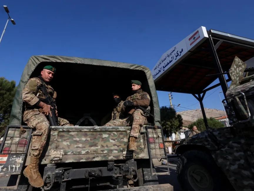 عناصر من الجيش اللبناني بالقرب من معبر "المصنع" على الحدود اللبنانية السورية. 08 ديسمبر 2024 - Reuters