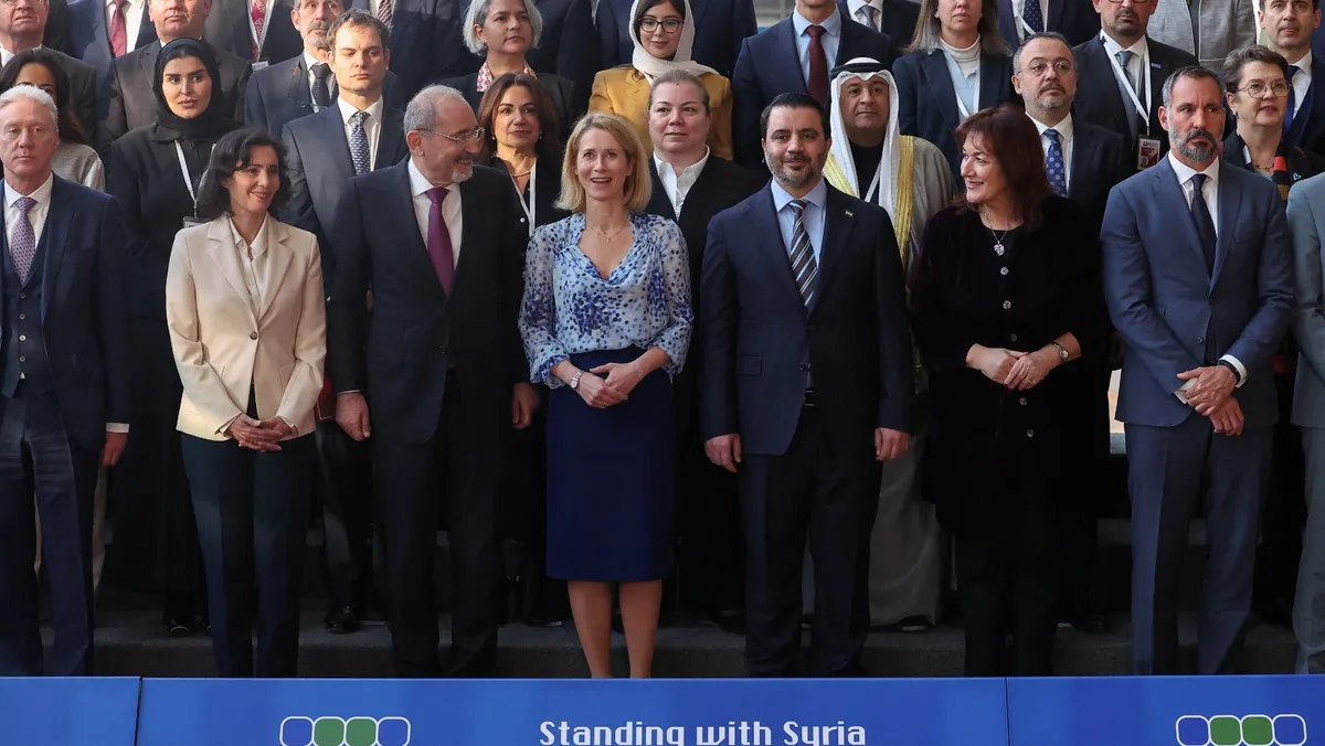 شاركت سوريا للمرة الأولى في مؤتمر المانحين الذي عُقِد في 17 مارس في بروكسل بحضور رسمي رفيع المستوى ممثلاً بوزير الخارجية أسعد الشيباني، وتعهدت الدول المانحة، بينها الاتحاد الأوروبي، بتقديم مساعدات إلى سوريا، بقيمة 5.8 مليار يورو (6.3 مليار دولار)، وهو مبلغ أدنى من التزامها السابق، بسبب عدم مساهمة الولايات المتحدة.