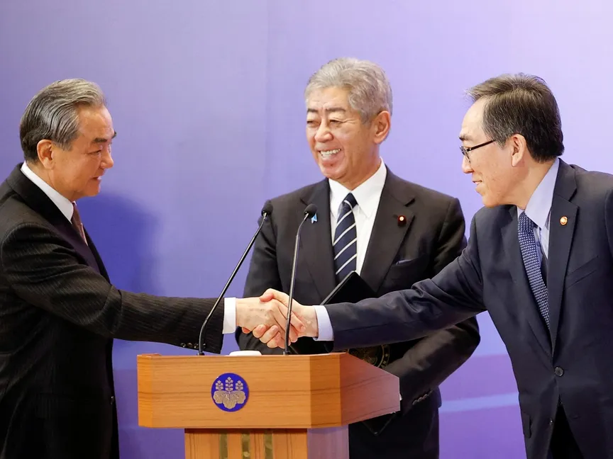 اجتمع وزراء خارجية اليابان والصين وكوريا الجنوبية في طوكيو، السبت، في إطار سعي الدول الثلاث إلى إيجاد موقف مشترك بشأن الأمن الإقليمي والقضايا الاقتصادية وسط تزايد حالة عدم اليقين الجيوسياسي.