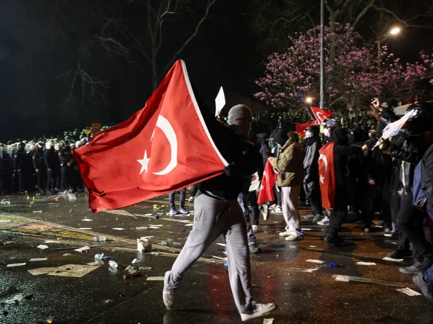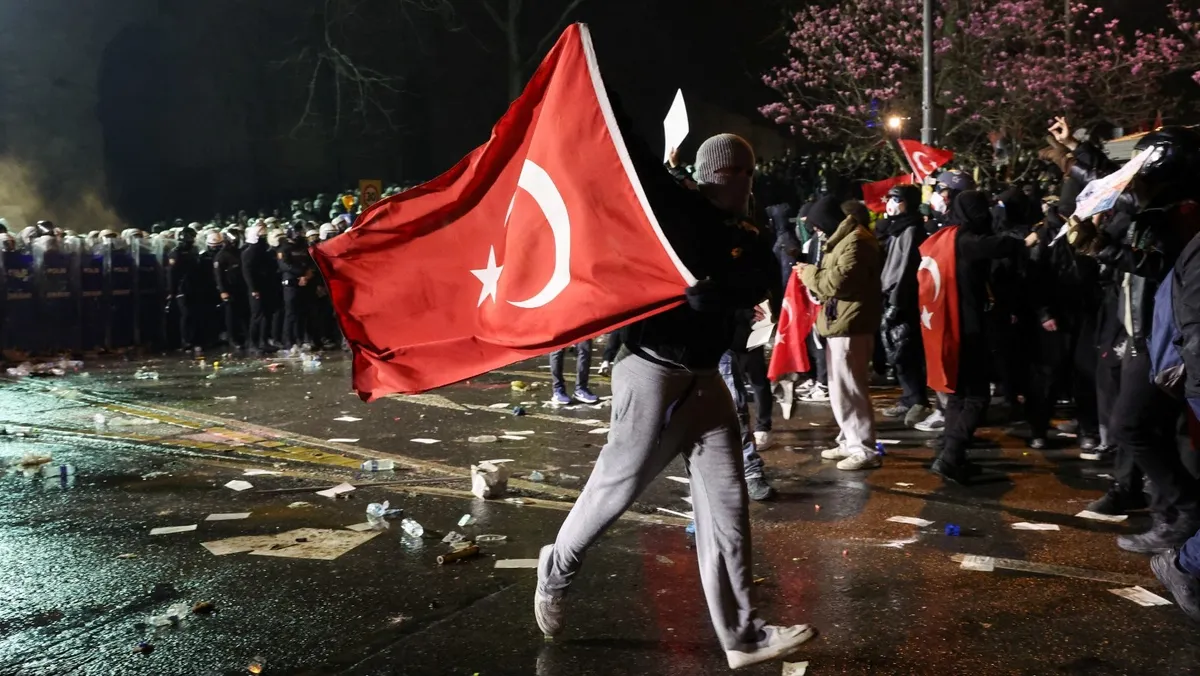 ومنذ الأربعاء، يخرج عشرات الآلاف من الأتراك إلى الشوارع في احتجاجات بعد اعتقال إمام أوغلو، الذي يعد المنافس السياسي الرئيسي للرئيس التركي رجب طيب أردوغان في انتخابات 2028.