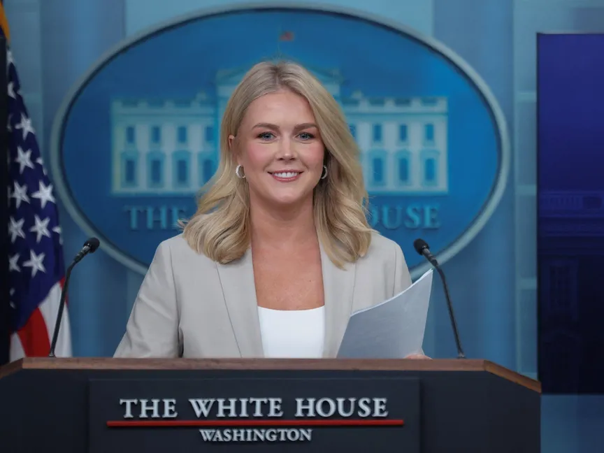 المتحدثة باسم البيت الأبيض كارولين ليفيت تعقد مؤتمراً صحافياً في البيت الأبيض في واشنطن العاصمة، الولايات المتحدة الأميركية. 1 أبريل 2025 - Reuters