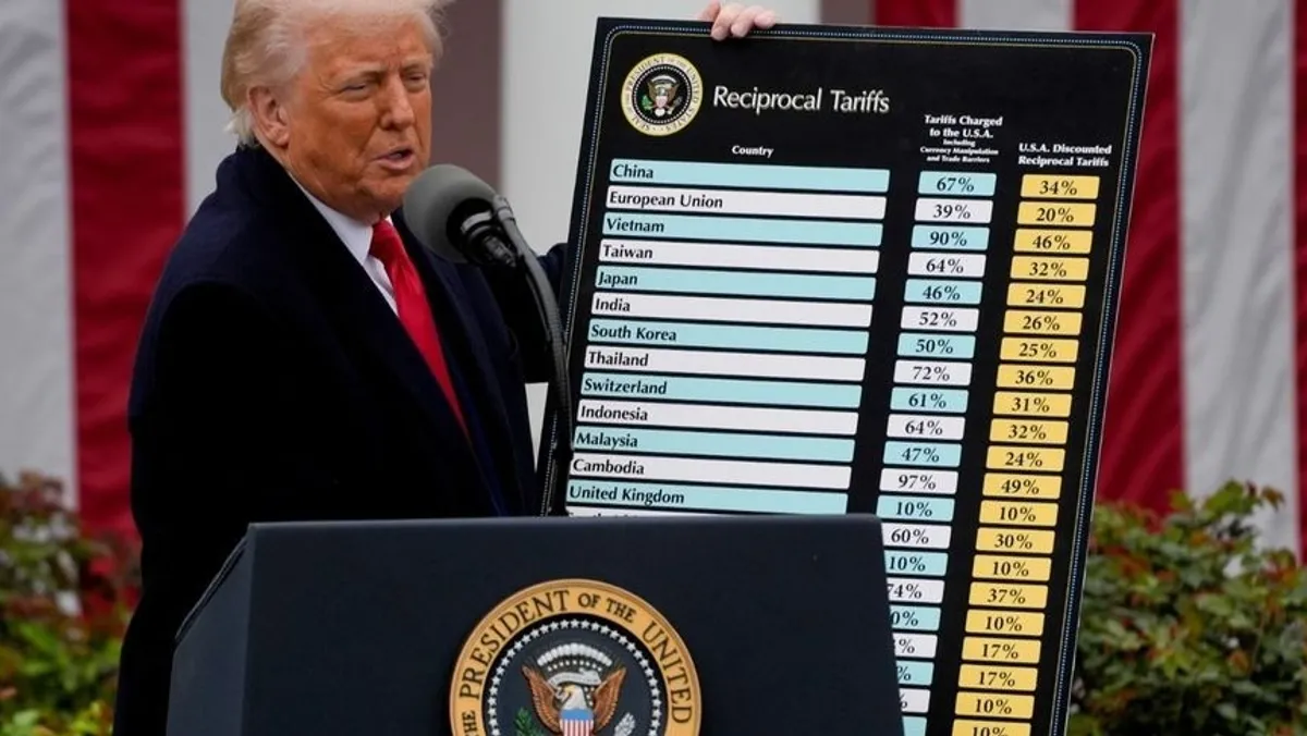 أعلن ترمب عن مجموعة من التعريفات الجمركية في فعالية "روز جاردن" التي أُقيمت الأربعاء، حيث قلب جانبي لوحة تحمل سلسلة من التعريفات الجمركية تعتمد على "الرسوم الجمركية المفروضة على الولايات المتحدة"، فيما فُرضت "التعريفات المتبادلة المخفضة" بنصف المعدل المفروض على البضائع الأميركية.