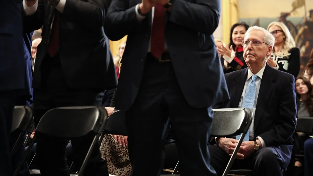 السيناتور الجمهوري ميتش ماكونيل يستمع لكلمة الرئيس الأميركي دونالد ترمب خلال مراسم التنصيب في مبنى الكابيتول بواشنطن. 20 يناير 2025 - REUTERS